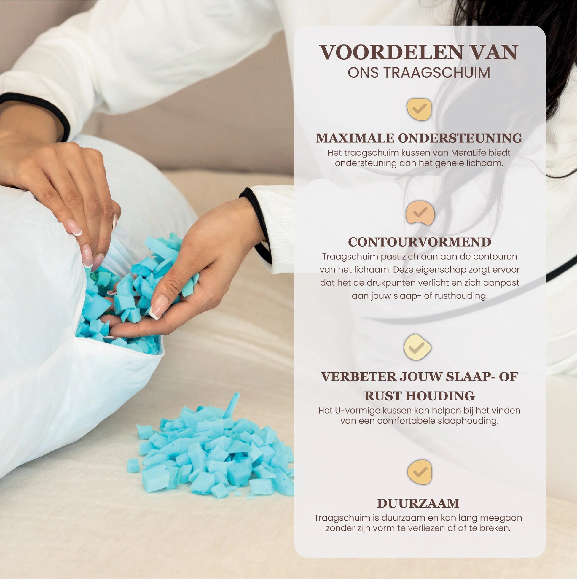 Het MeraLife zwangerschapskussen biedt complete ondersteuning voor het hele lichaam, zodat je comfortabel kunt slapen en ontspannen.