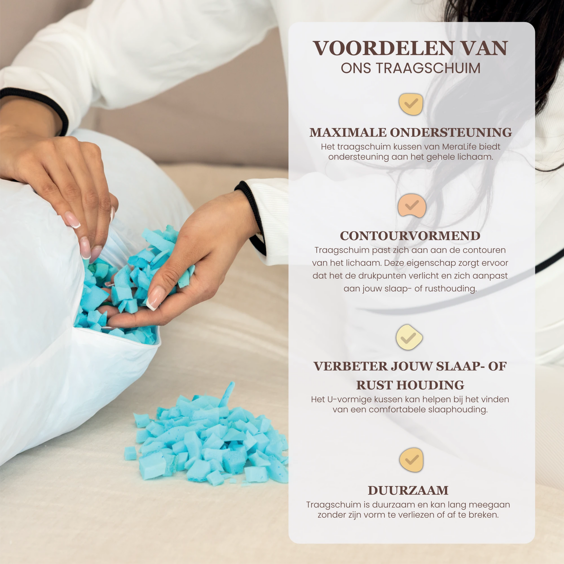 Het MeraLife zwangerschapskussen biedt complete ondersteuning voor het hele lichaam, zodat je comfortabel kunt slapen en ontspannen.