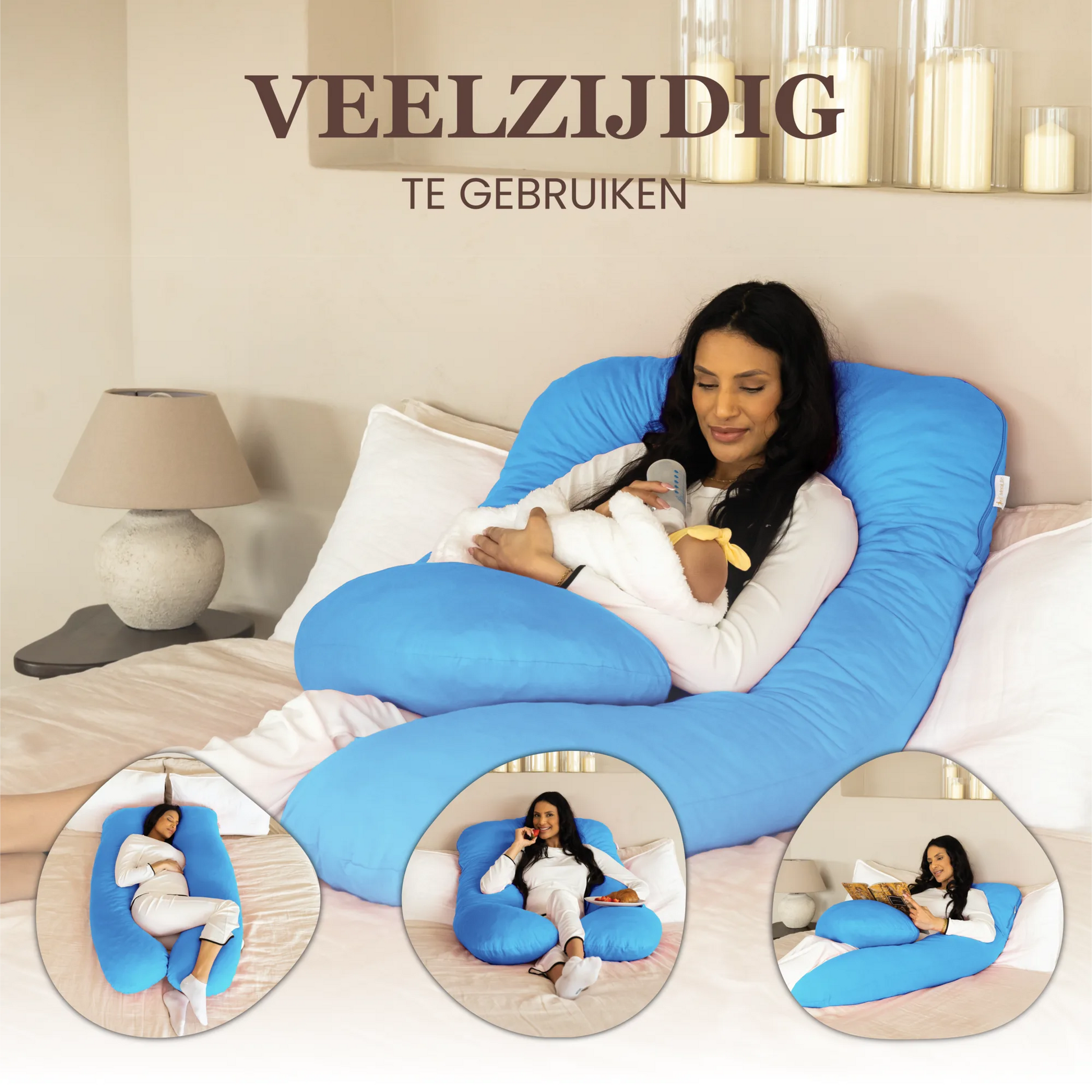 Het MeraLife zwangerschapskussen biedt volledige ondersteuning tijdens de zwangerschap en helpt lichamelijke klachten te verminderen. Het ondersteunt uw buik, verlicht rugpijn en zorgt voor een betere uitlijning van heupen en benen, wat kramp en bekkenpijn helpt voorkomen. Vooral voor zijslapers biedt het extra comfort en bevordert het een ontspannen slaaphouding. Bovendien is het kussen multifunctioneel en ook na de zwangerschap handig, bijvoorbeeld tijdens het voeden. Met een zwangerschapskussen slaapt u comfortabeler en geniet u van optimale ondersteuning gedurende uw hele zwangerschap.